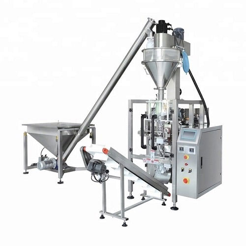 VFFS (Collar Type) with Auger Filler is an PLC controlled intermittent Center Seal Bag making machine suitable for packing various kind of powders like Atta, Besan, Maida, etc upto 1Kg in a Heat Sealable Laminates such as PET / MET BOPP/ POLY , Paper laminate etc.